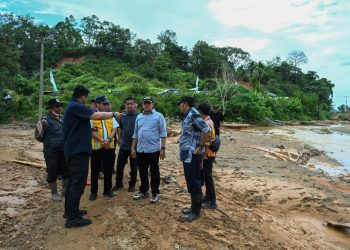 Tapteng-metrodeli Gubernur Sumatera Utara (Sumut) Muhammad Bobby Afif Nasution meninjau langsung kondisi Sungai Tukka sekaligus membahas rencana pembangunan tanggul yang...