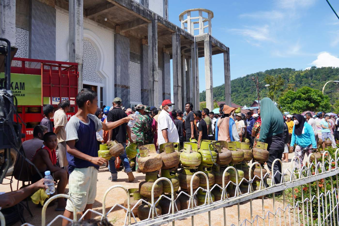 Setiap truk mengangkut 650 tabung gas dan langsung di distribusikan ke masyarakat di Pandan, tepatnya Masjid Agung Al Muslimin Tapteng, setiap warga yang telah menerima diberi tanda khusus.
