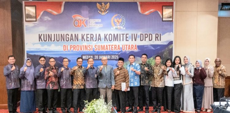 MEDAN-Otoritas Jasa Keuangan (OJK) Provinsi Sumatera Utara menerima kunjungan kerja ( kunker) Komite IV Dewan Perwakilan Daerah Republik Indonesia (DPD RI), Senin (20/01/2025).