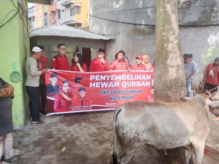 DPC Partai Demokrasi Indonesia (PDI) Perjuangan Kota Medan menyalurkan empat ekor sapi kurban tahun ini di empat lokasi, belum lama ini.