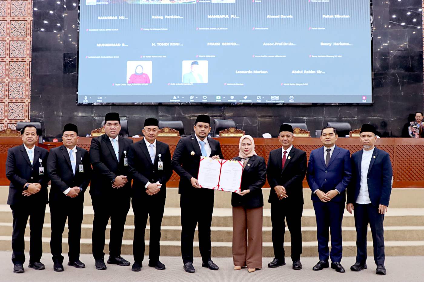 Pengesahan itu dilakukan pada Rapat Paripurna DPRD Sumut dalam agenda penyampaian pendapat akhir fraksi-fraksi tentang R-APBD Sumut TA 2026, yang dipimpin Ketua DPRD Sumut Erni Aryanti Sitorus didampingi Wakil Ketua Dewan Sutarto, Ihwan Ritonga, Salman Alfarisi dan dihadiri Gubernur Sumut Muhammad Bobby Afif Nasution, Jumat 28 November 2025 di Gedung di DPRD Sumut, Jalan Imam Bonjol Medan.