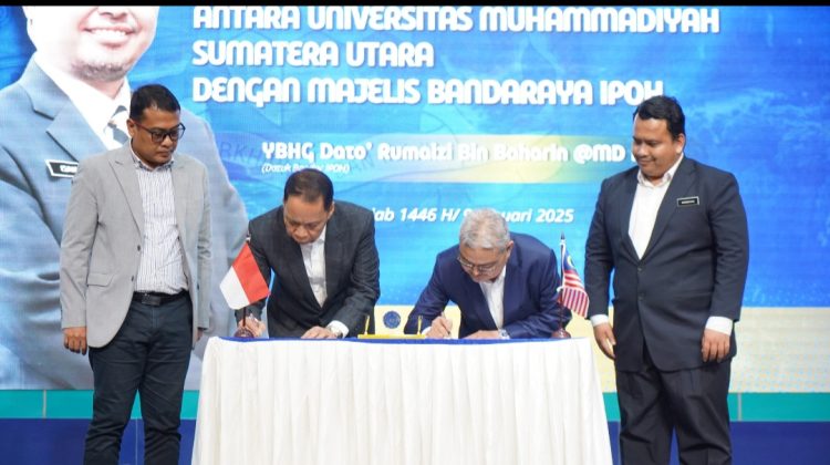 MEDAN-Wali Kota Bandaraya Ipoh, Malaysia, Rumaizi Bin Baharin MD Daud melakukan kunjungan ke kampus Universitas Muhammadiyah Sumatera Utara (UMSU) dalam rangka silaturahmi, sekaligus penanda tanganan nota kesepahaman (MoU) memperkuat kerja sama internasional.