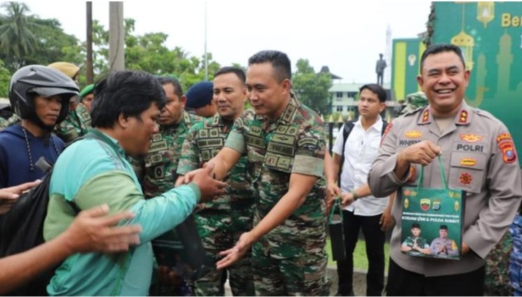 Panglima Komando Daerah Militer (Pangdam) I Bukit Barisan, Mayjen TNI Rio Firdianto bersama Kapolda Sumatera Utara (Sumut) Irjen Pol Wishnu Hermawan Februanto membagikan paket berbuka kepada warga Medan dan sekitarnya. Pembagian paket berbuka tersebut di damping sejumlah pejabat di Sumut.