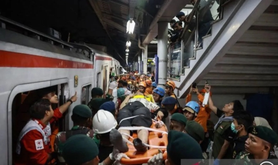 Polda Metro Jaya menyebutkan korban tabrakan antara KA Argo Bromo Anggrek dan KRL Commuter Line yang terjadi di Stasiun Bekasi Timur, Jawa Barat, Senin 27 April 2026 malam, berjumlah 15 orang.
