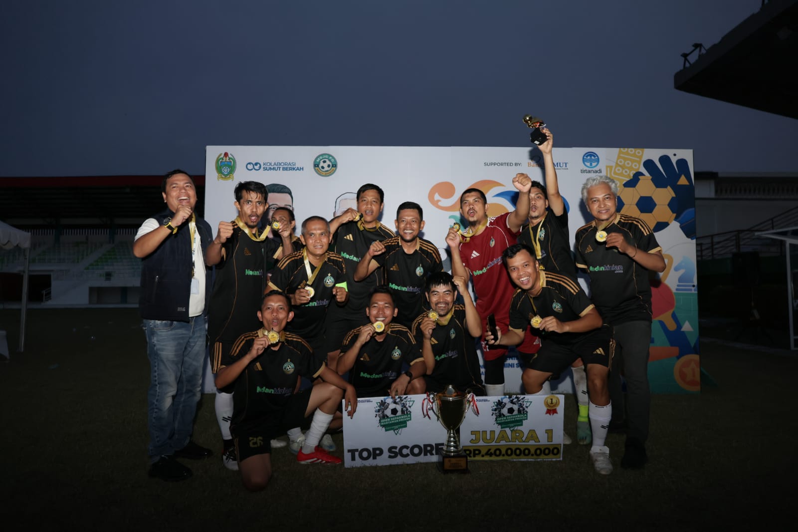 Tim MSJC untuk kedua kalinya berhasil meraih juara Pertama Cabang Olahraga Misodi ajang Pekan Olahraga Wartawan Sumatera Utara (PORWASU) 2026 perebutan piala Gubernur Sumatera Utara, Bobby Nasution di Stadion Mini Disporasu Pancing, Minggu 12 April 2026d sore.