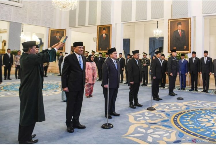 Dalam prosesi yang berlangsung tepat pada pukul 15.00 WIB itu, Presiden Prabowo memimpin pengambilan sumpah pejabat-pejabat baru tersebut.