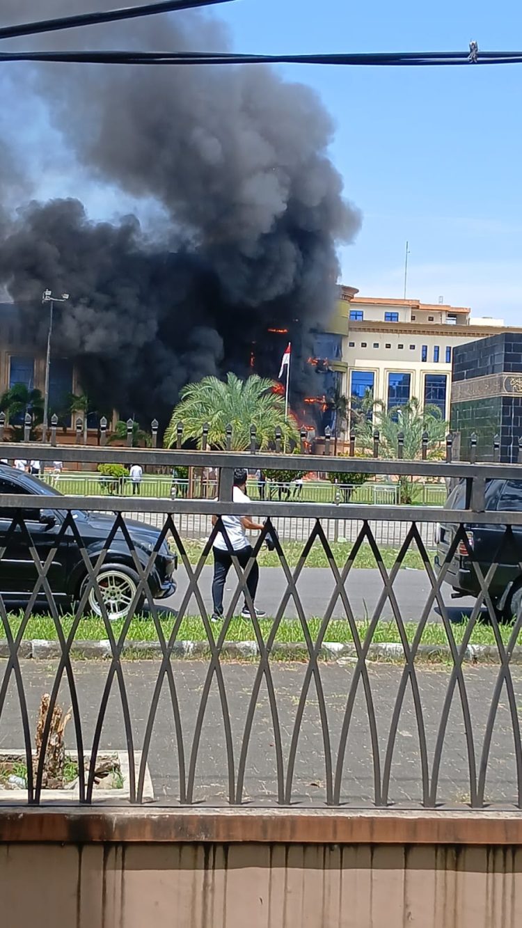metrodeli/istimewa TERBAKAR: Gedung yang berada di salah satu blok dalam komplek Asrama Haji Medan yang kerap dipakai untuk kegiatan agama dan penginapan jamaah haji kebakaran, Rabu 30 Juli 2025.
