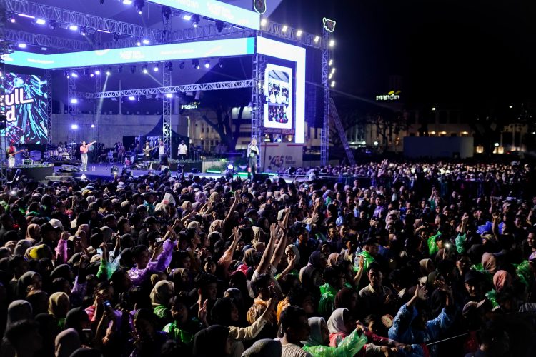 Antusiasme masyarakat memenuhi area pusat kota sejak sore hingga malam hari, menciptakan suasana yang semarak dan penuh kebanggaan.