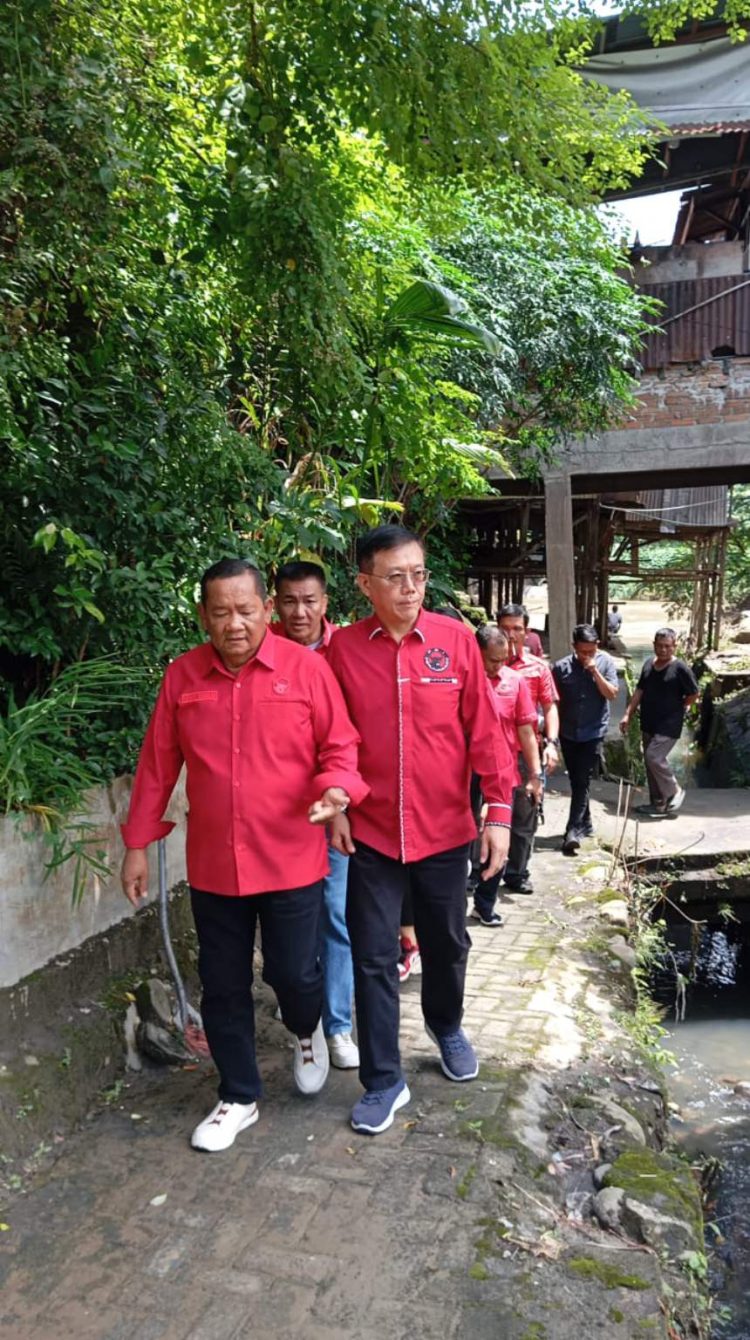 metrodeli/istimewa TINJAU :Ketua DPC PDI Perjuangan Kota Medan Hasyim SE mendampingi Ketua DPD PDI Perjuangan Sumatera Utara Rapidin Simbolon saat meninjau salah satu lokasi banjir di Medan, belum lama ini.