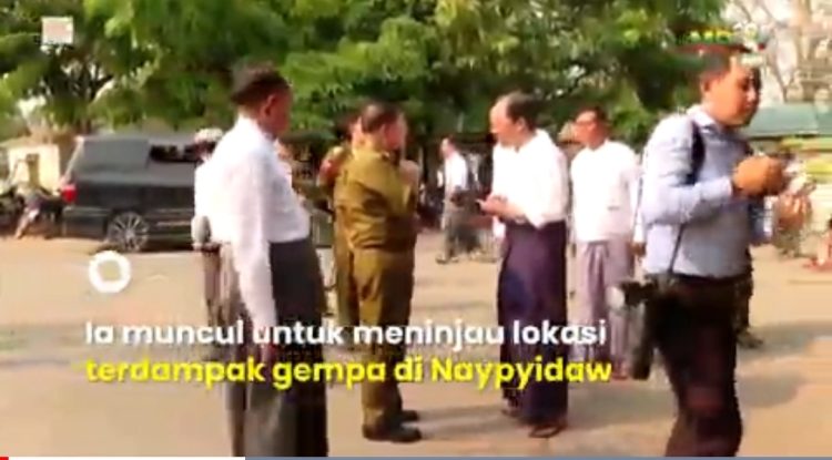 Kepala junta militer Myanmar, Jenderal Min Aung Hlaing, mengecek lokasi terdampak bencana gempa dan rumah sakit darurat di daerah ibu kota Naypyidaw.