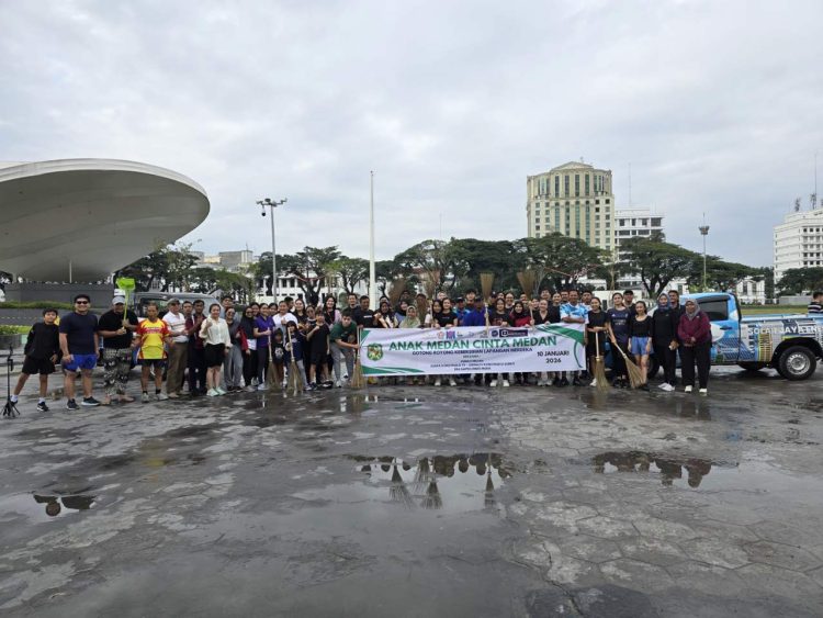 Komunitas Anak Medan Cinta Medan (AMCM) menggelar aksi bersih-bersih Lapangan Merdeka, Kota Medan, Sabtu, 10 Januari 2026. Kegiatan ini, wujud kepedulian dengan fasilitas umum yang bersih dan ramah lingkungan.