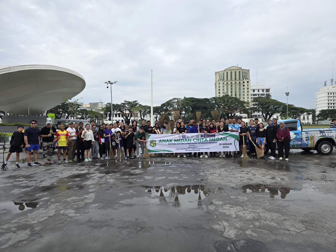 Kegiatan Komunitas Anak Medan Cinta Medan menggelar aksi bersih-bersih Lapangan Merdeka, juga dihadiri Ketua DPD Gapeksindo Sumut, Jimmy Simbolon, Excel Korua Tobing, Ketua DPC Gapeksindo Medan, Bonifasius L.Gaol dan Ketua Ruang Jurnalis Kontruksi, Lilik Riadi.