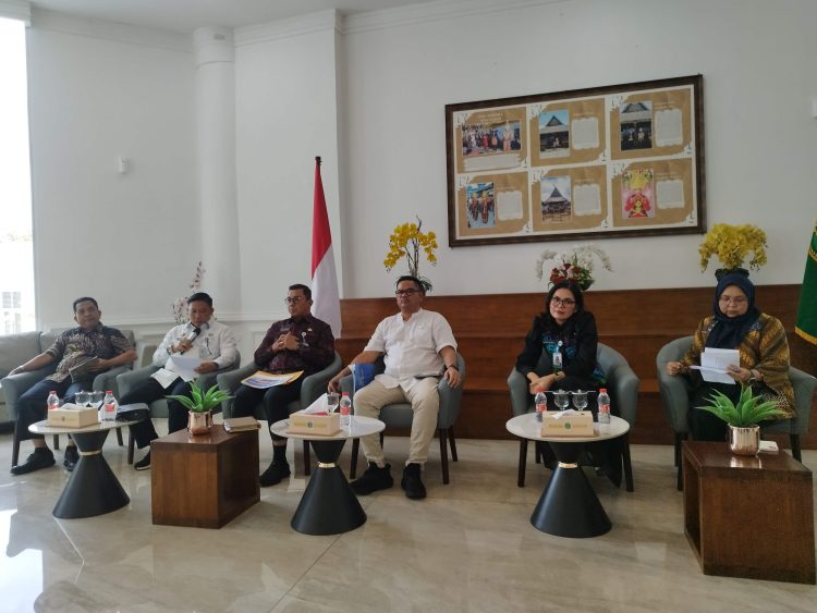 metrodeli/istimewa KONFERENSI PERS: Kadis Kominfo Sumut Erwin Hotmansyah Harahap menyampaikan materinya dalam Konferensi Pers bertemakan Program PUBG bersama Kadis Pendidikan Sumut Alexander Sinulingga melalui Staf Disdik Sumut Faisal, Kepala BPSDM Sumut Agustinus Panjaitan, Kadis Arsip dan Perpustakaan Desny Saragih dengan moderator Kabid Kominfo Sumut Harvina Zuhra di Kantor Gubernur Sumut, Jumat (19/9).