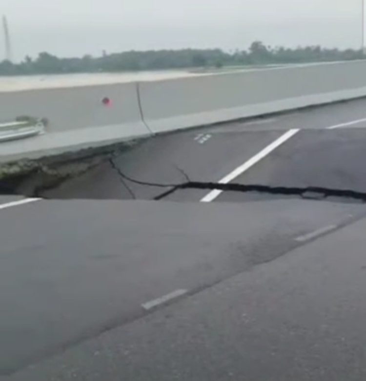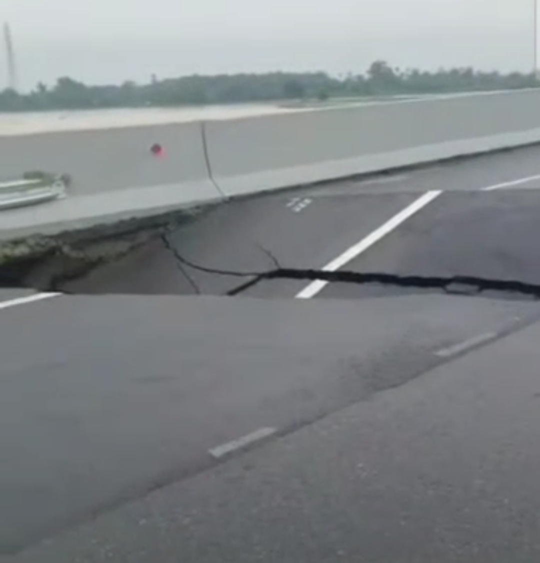 Bagian Ruas Jalan tol JMKT dari arah Tebingtinggi menuju Medan tepatnya jembatan di KM 41, Jumat 28 November 2025 amblas yang menyebabkan lalu lintas putus total.