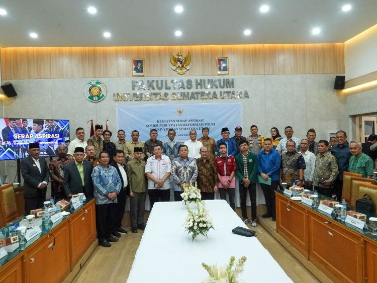 metrodeli/istimewa SERAP ASPIRASI: Komisi Percepatan Reformasi Polri menyerap berbagai aspirasi dari tokoh masyarakat, praktisi hukum, LSM, akademisi, dan mahasiswa di Sumatera Utara di Ruang Dewan pertimbangan Fakultas Hukum USU (universitas Sumatera Utara) Medan, Jumat 12 Desember 2025.