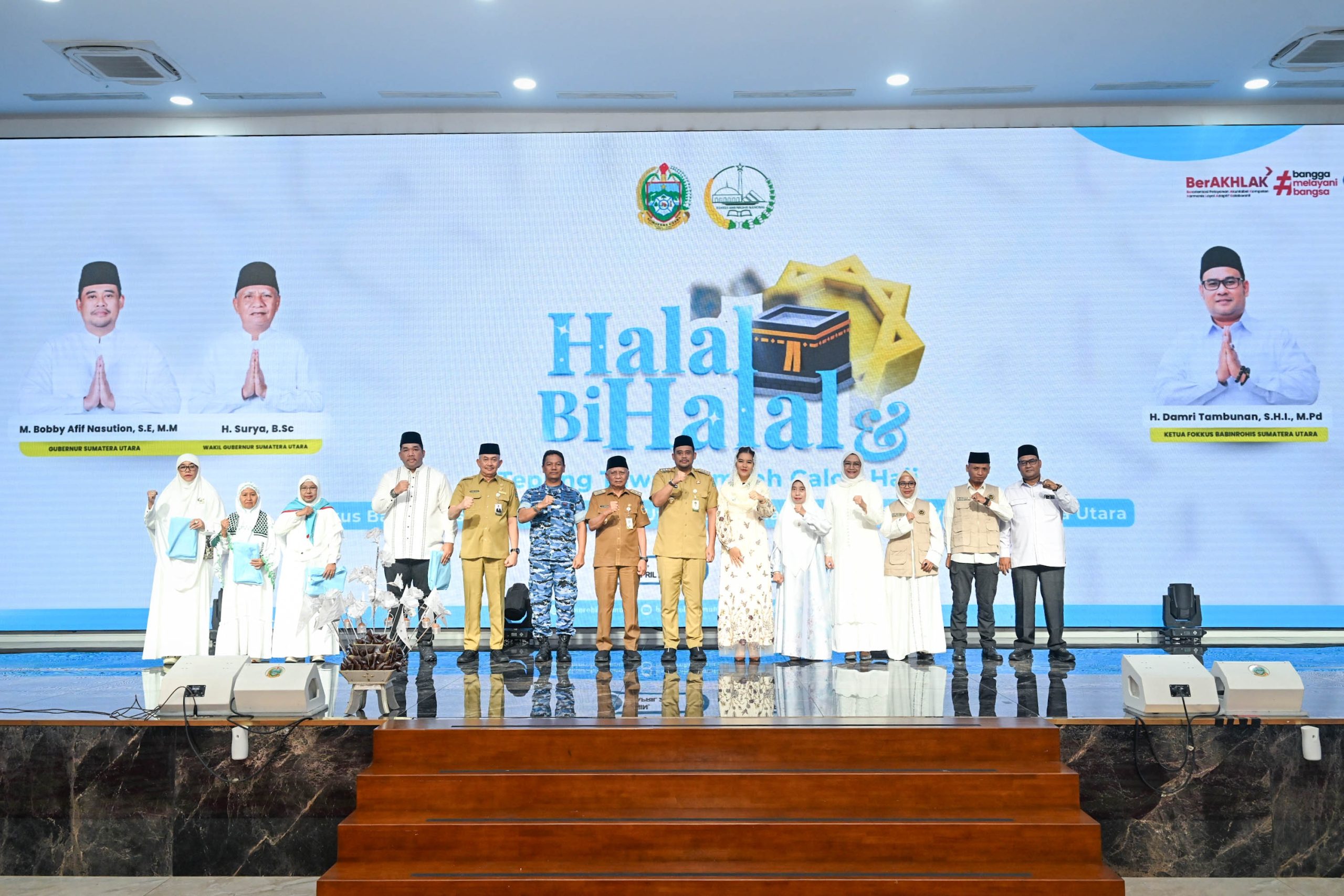 Demikian Gubsu M Bobby Nasution saat menghadiri acara Halalbihalal dan Tepung Tawar Jemaah Calon Haji Tahun 2026 di Aula Raja Inal Siregar , Kantor Gubernur Sumut, Jalan Pangeran Diponegoro Nomor 30 Medan, Senin 20 April 2026.
