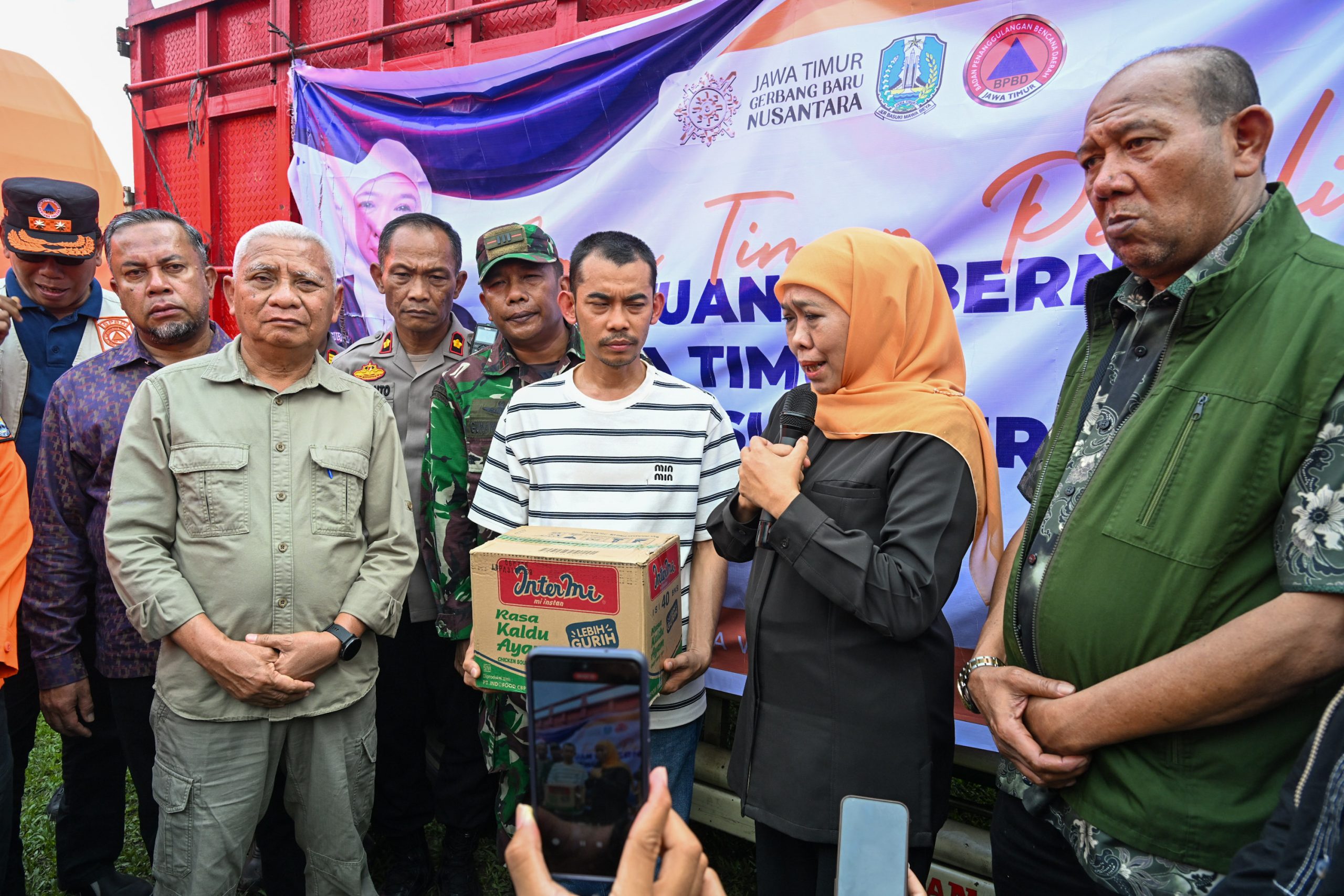 Sementara itu, Gubernur Jatim Khofifah Indar Parawansa turut menyapa para pengungsi dan memberikan penguatan kepada warga.
