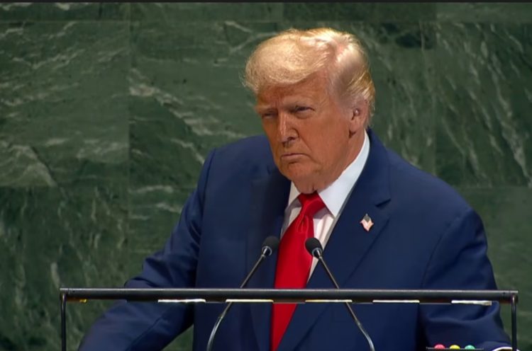 metrodeli/istimewa BERPIDATO : Presiden Amerika Serikat (AS) Donald Trump berpidato dalam Sidang Majelis Umum Perserikatan Bangsa-Bangsa (PBB) di New York, AS, Selasa (23/9/2025). Trump membuka pidatonya di Sidang Umum PBB dengan teleprompter rusak. Ia berseloroh lebih baik bicara dari hati.(YOUTUBE/UNITED NATIONS)